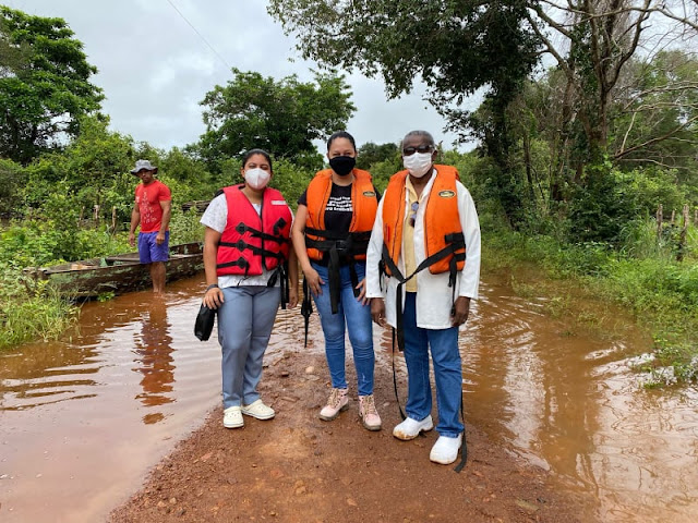 Equipe da Secretaria de Saúde de Caxingó visita comunidade ilhada devido às enchentes