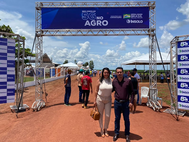 Data: 08/04/2022O prefeito de Caxingó, Magnum Cardoso (PP) e a secretária municipal de Administração e Planejamento, Silmara Cardoso, estiveram nesta quarta-feira (30), no município de Baixa Grande do Ribeiro, participando da cerimônia de lançamento da primeira fazenda 5G no Brasil. O 5G no Agro, nome dado ao evento, que aconteceu na fazenda Ipê, contou a presença do presidente Jair Bolsonaro, ministros, autoridades, fazendeiros, populares e dezenas de prefeitos do estado do Piauí.