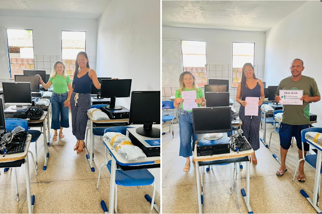 A Unidade Escolar Almirante Gervásio Sampaio, no povoado Cajazeiras de Baixo, foi contemplada com essa parceria. Além da secretária de Educação, a diretora da escola, Professora Karliane Ferreira também acompanhou a chegada dos equipamentos que irão levar inclusão digital para alunos da rede municipal de ensino.