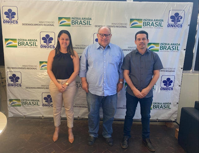 Ao lado da secretária municipal de Administração, Silmara Cardoso, o prefeito solicitou junto ao Departamento Nacional de Obras Contra as Secas (DNOCS) a perfuração de poços tubulares e materiais para sistemas de abastecimento de água para localidades do município. O diretor do órgão se prontificou em resolver com rapidez as reivindicações do gestor.