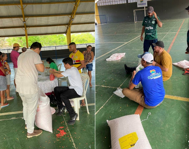 Data: 19/01/2023A Prefeitura de Caxingó, que tem a frente o prefeito Magnum Cardoso (PP), através da Secretaria Municipal de Desenvolvimento Rural e Meio Ambiente, realizou na manhã desta quarta-feira (18) no ginásio poliesportivo da cidade, a entrega de dezenas de quilos de sementes de milho e feijão para agricultores familiares do município.