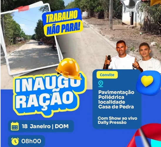 Data: 16/01/2026A Prefeitura de Caxingó, PI, segue ampliando os investimentos em infraestrutura urbana e rural, desta vez com a entrega de uma importante obra na localidade Casa de Pedra. A nova pavimentação poliédrica representa um avanço significativo para a mobilidade da comunidade, garantindo melhores condições de tráfego, mais segurança e valorização do espaço público.